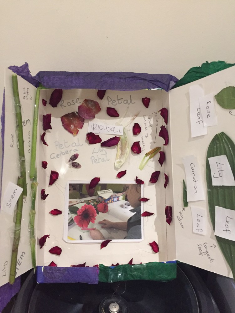 Let me take you back a few hours. It all started quite sensibly. Family learning homework being to do something (anything) on the topic of ‘flowers’. Flowers: we know. Roses, daffodils, bluebells, daisies: we love but we don’t know. Petal, stem, leaf: blank.