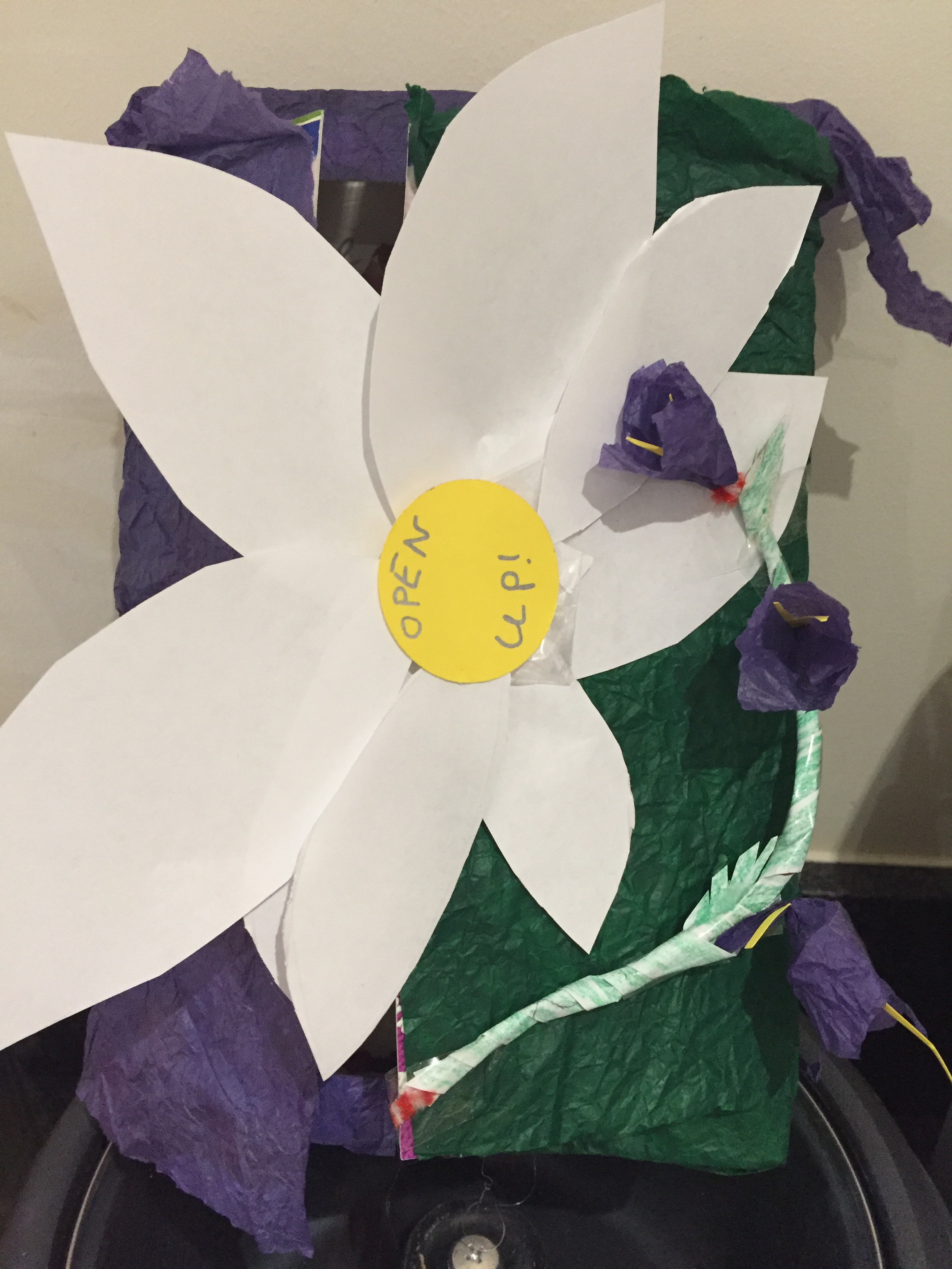 Here is what we made. We have flower names, we have parts of the flower, we have cued hours of discussion using this new vocabulary. We have second degree glue gun burn on the index finger of my non-dominant hand and we are probably in line for side-comments about unnecessary performance parenting.
